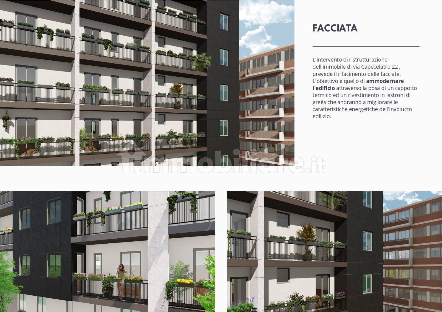 Il condominio è stato completamente ristrutturato nelle parti comuni. Gli interventi hanno riguardano la facciata, cappotto termico, sostituzione caldaia, rientrano tutti nella pratica condominiale.